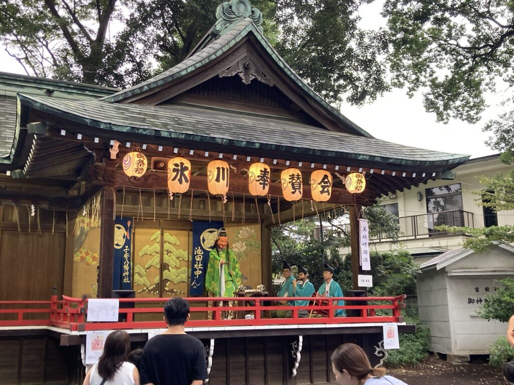 Traditional kagura performances, with drums, flutes, and dances, gave children a lively taste of Japanese festival culture.