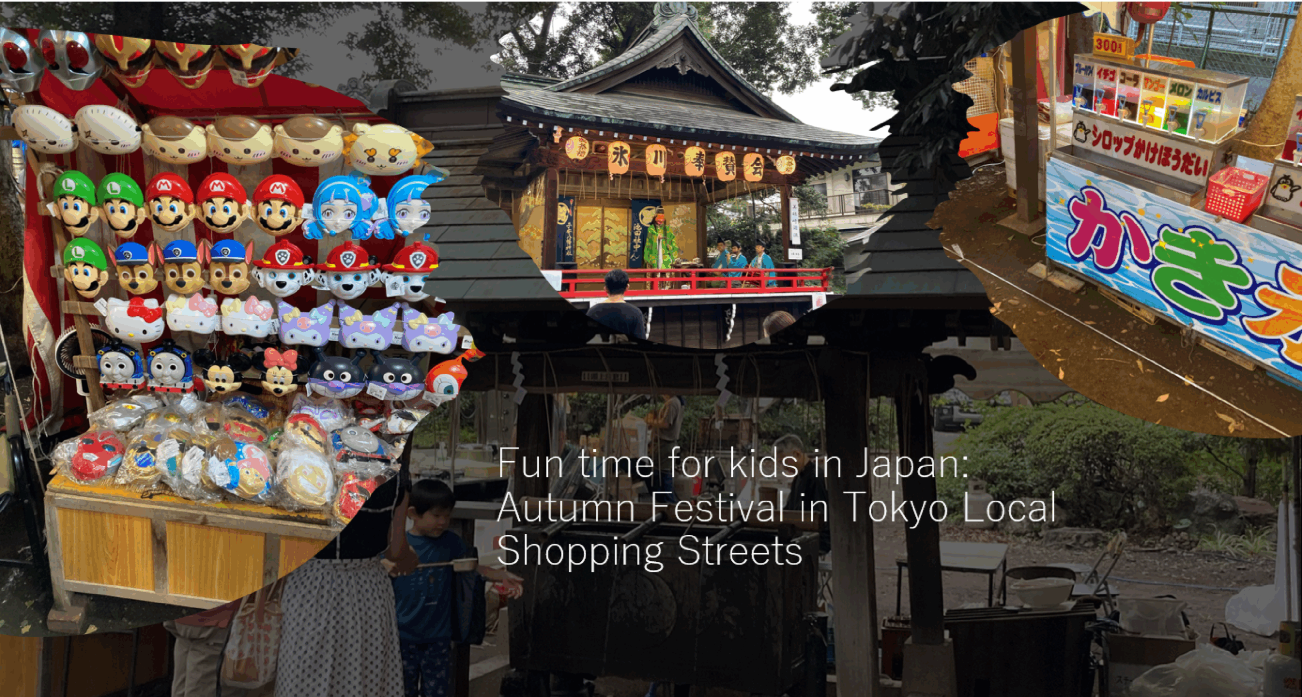 Traditional kagura performances, with drums, flutes, and dances, gave children a lively taste of Japanese festival culture.